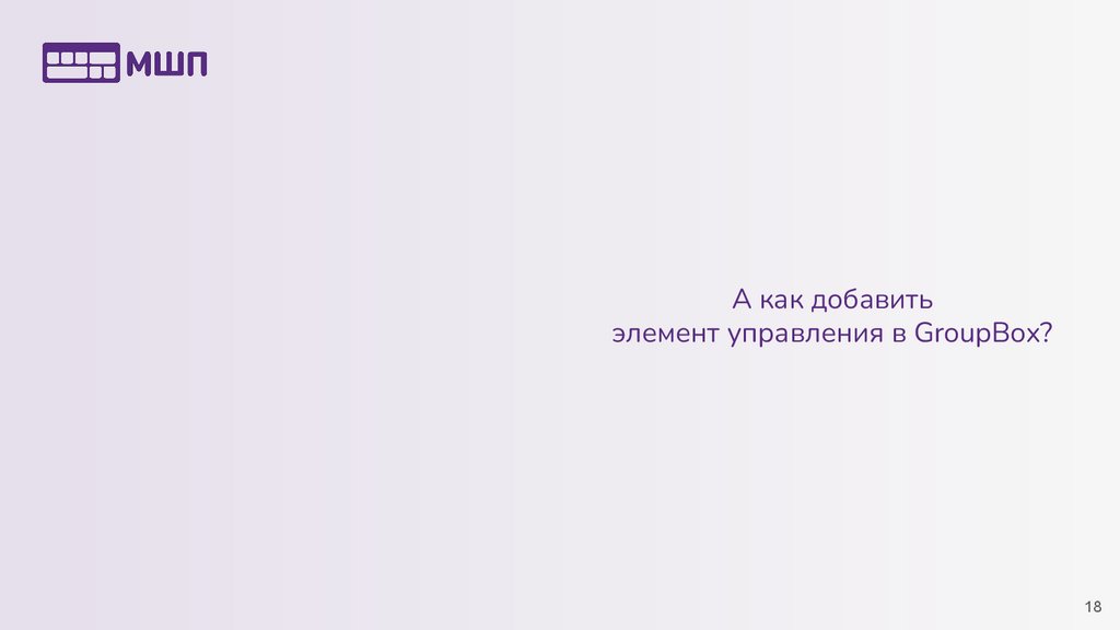А как добавитьэлемент управления в GroupBox?