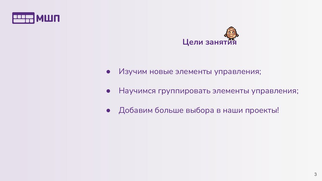 Цели занятияИзучим новые элементы управления;