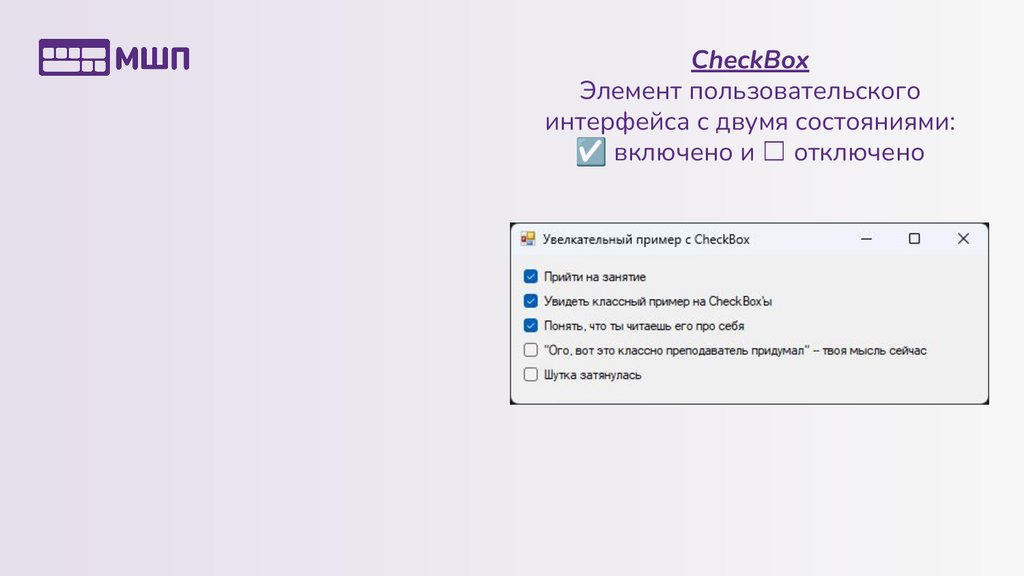 CheckBoxЭлемент пользовательского