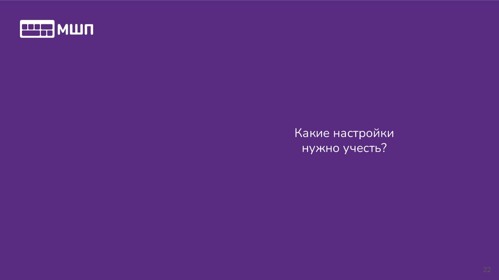 Какие настройкинужно учесть?
