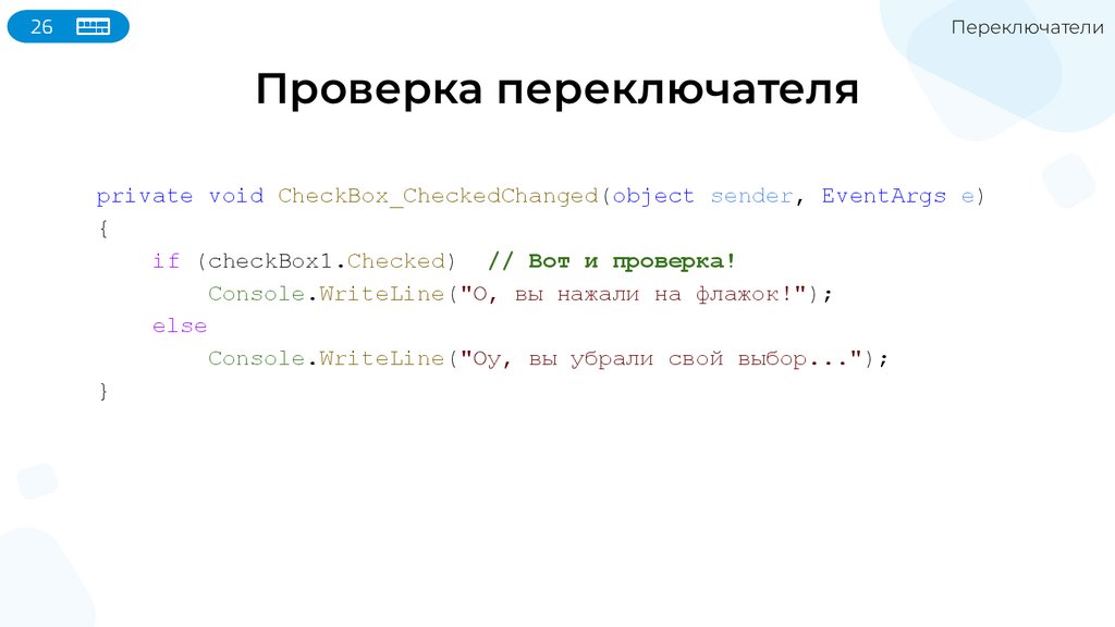Console.WriteLine("О, вы нажали на флажок!");