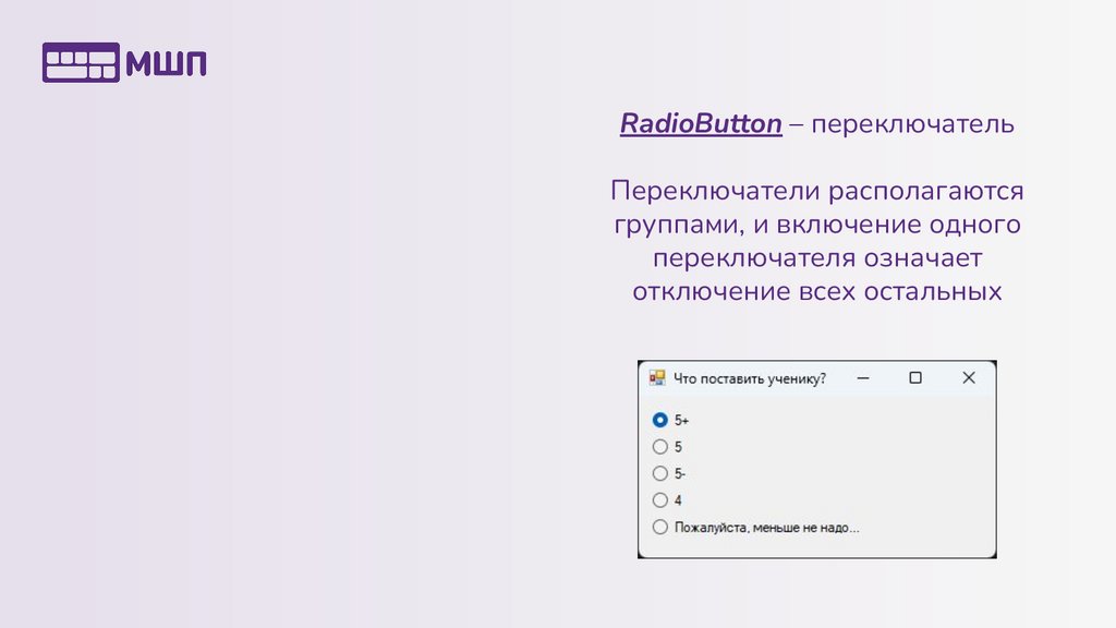 RadioButton – переключательПереключатели располагаются