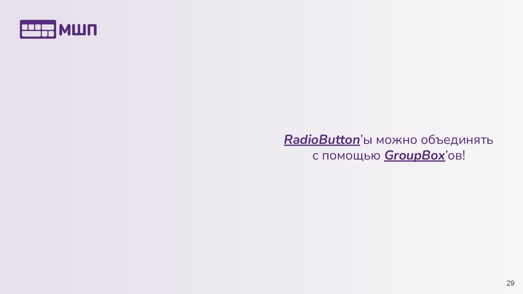 RadioButton’ы можно объединятьс помощью GroupBox’ов!