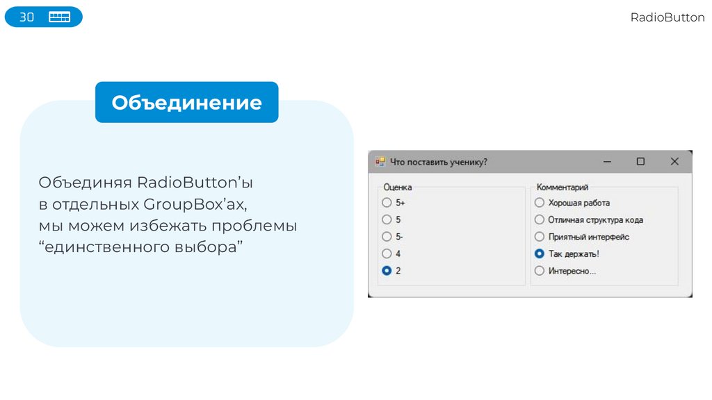 В остальном всё похоже на CheckBox’ы!31
