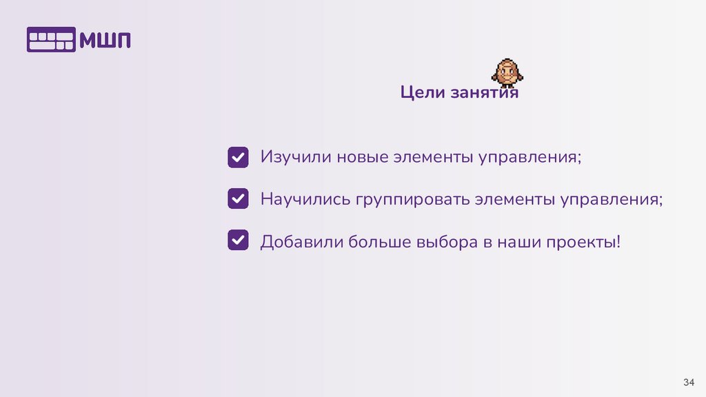 Цели занятияИзучили новые элементы управления;
