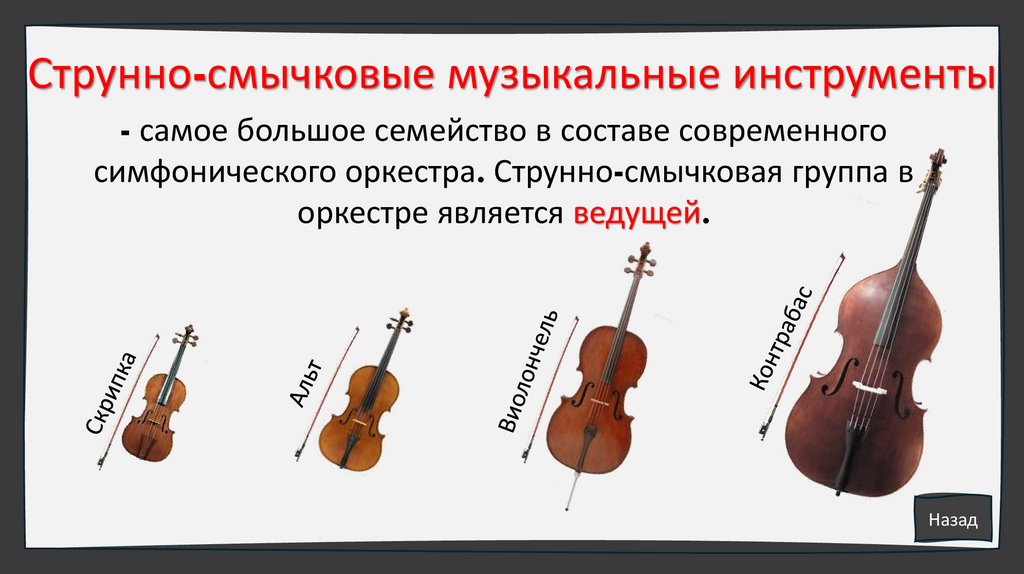 Струнно-смычковые музыкальные инструменты- самое большое семейство в составе современного