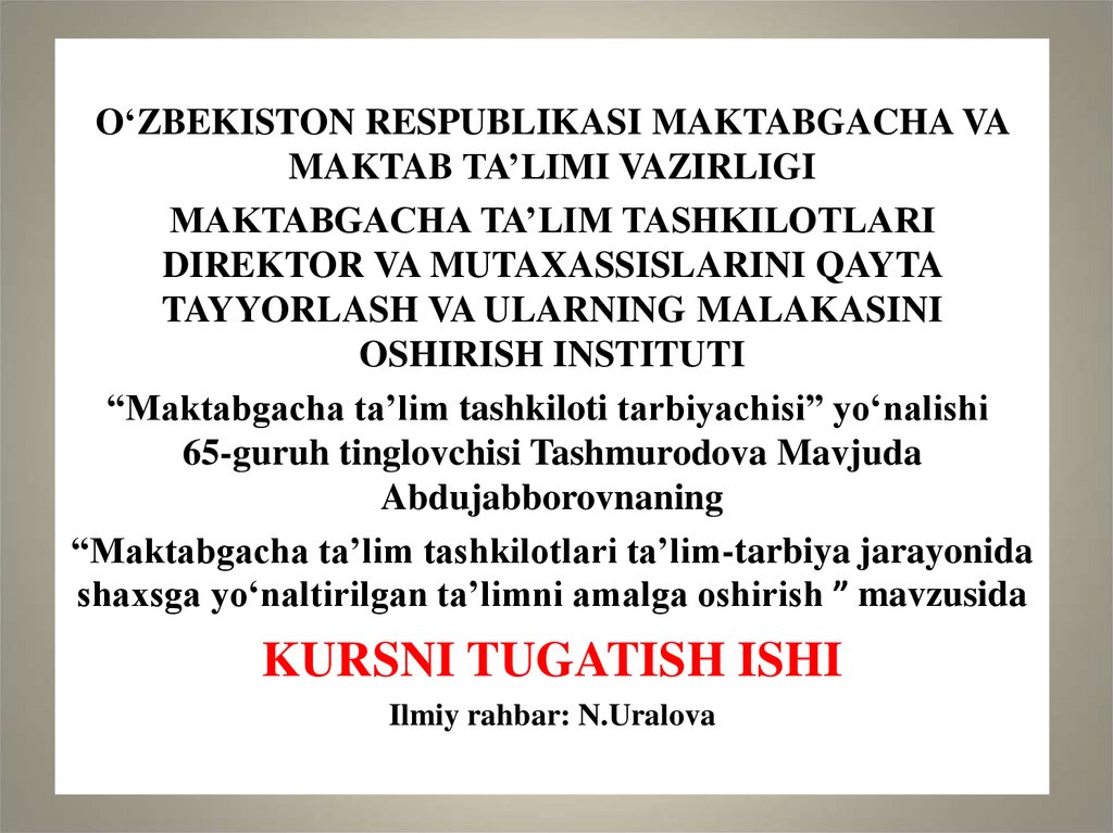 Ilmiy rahbar: N.Uralova