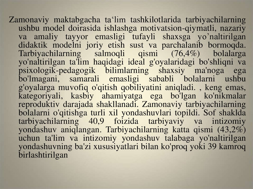didaktik modelni joriy etish sust va parchalanib bormoqda.