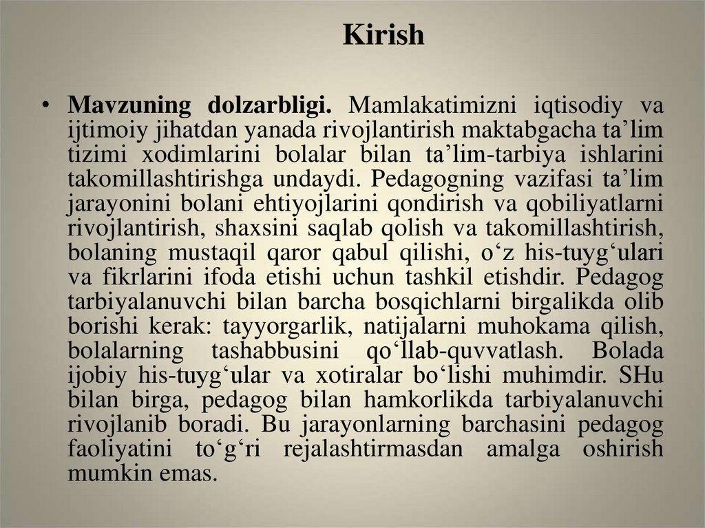 rivojlanib boradi. Bu jarayonlarning barchasini pedagog