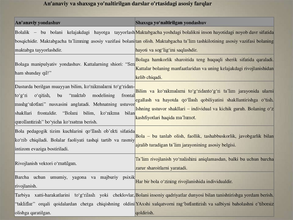 1.2. An’anaviy va shaxsga yo‘naltirilganyondashuvlarning farqlari