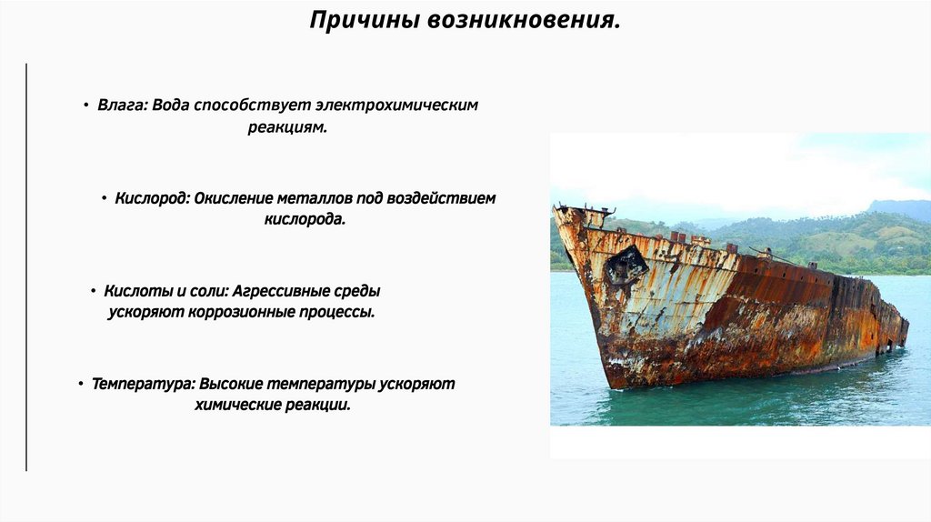 Причины возникновения.• Влага: Вода способствует электрохимическим