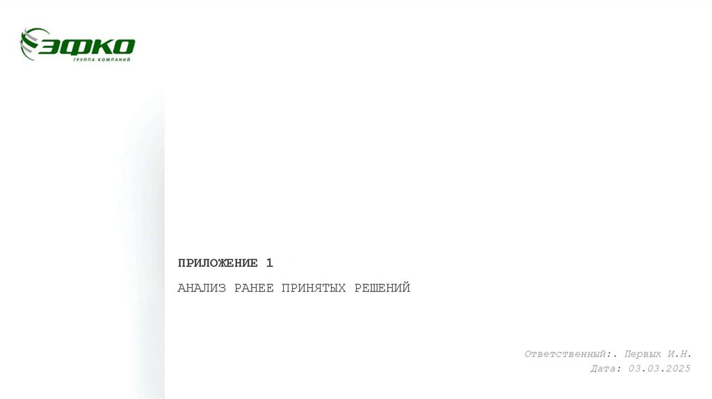 ПРИЛОЖЕНИЕ 1. АНАЛИЗ РАНЕЕ ПРИНЯТЫХ РЕШЕНИЙАнализ ранее принятых решений