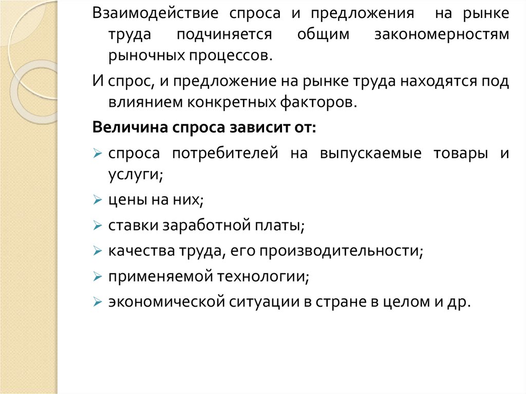 Взаимодействие спроса и предложения на рынкетруда подчиняется общим закономерностям