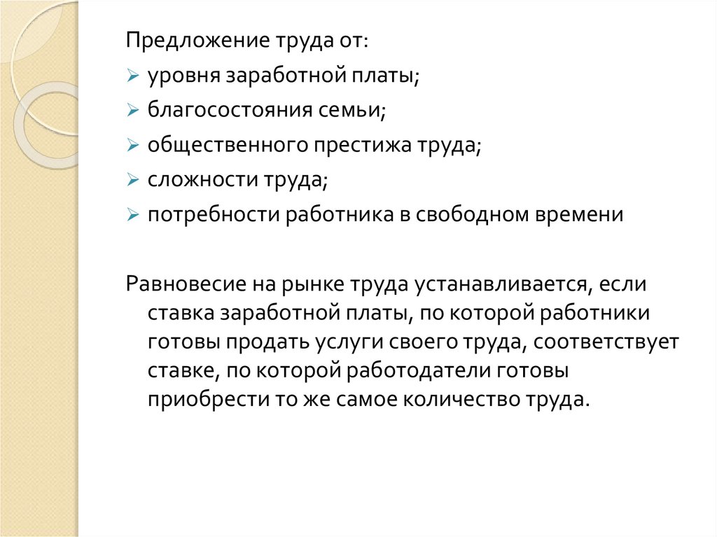 Предложение труда от:уровня заработной платы;
