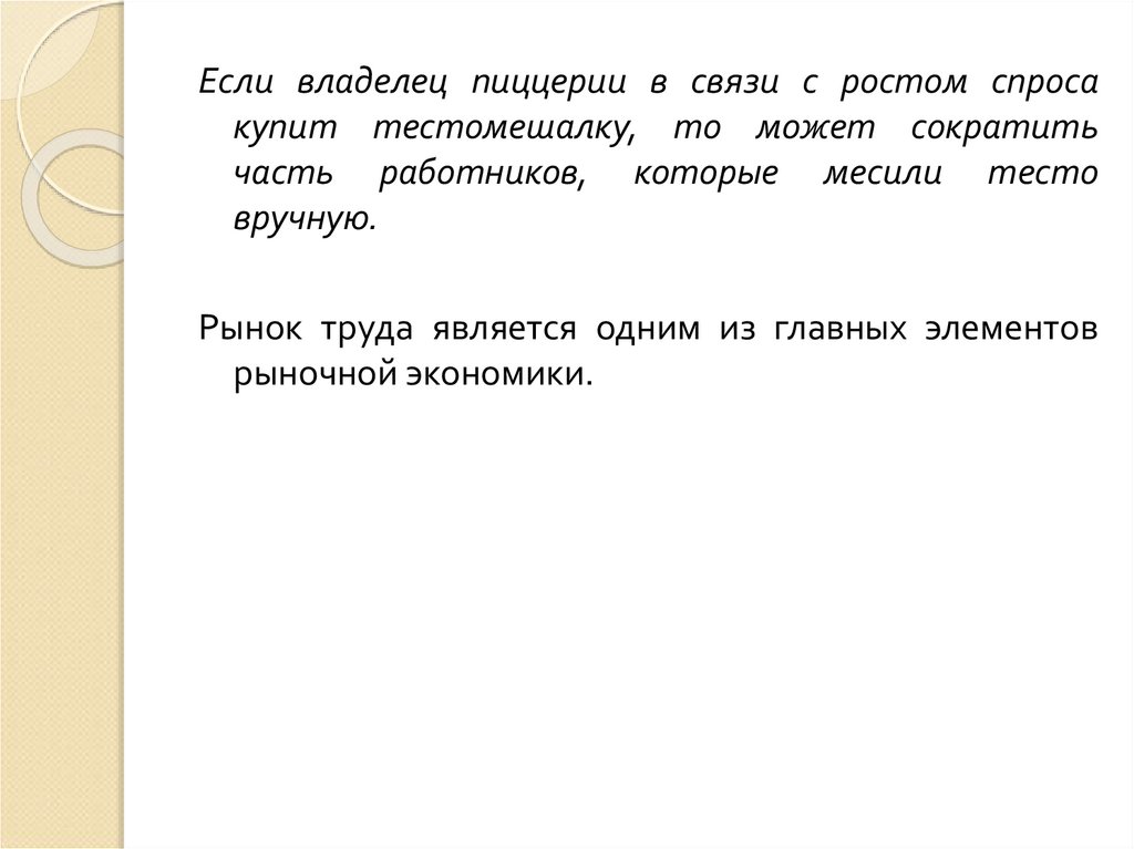 Если владелец пиццерии в связи с ростом спросакупит тестомешалку, то может сократить