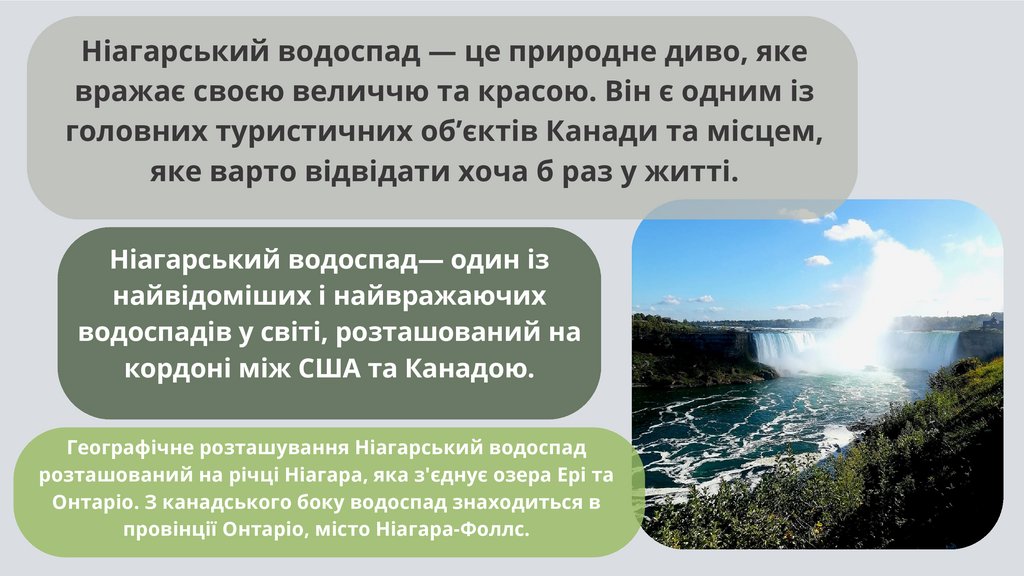 Ніагарський водоспад — це природне диво, якевражає своєю величчю та красою. Він є одним із
