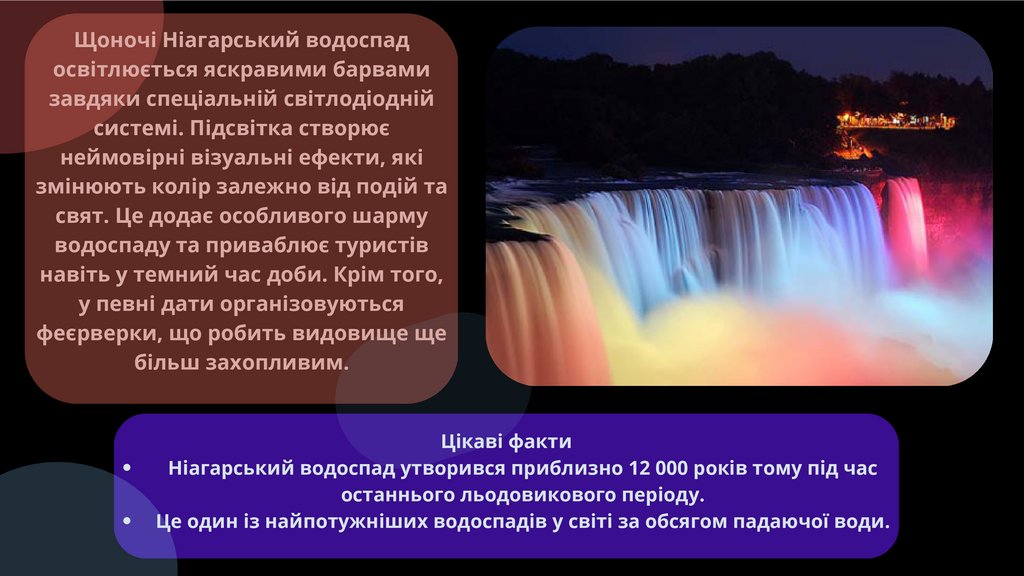 Щоночі Ніагарський водоспадосвітлюється яскравими барвами