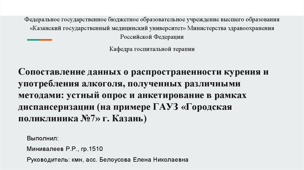 Федеральное государственное бюджетное образовательное учреждение высшего образования«Казанский государственный медицинский университет» Министерства здравоохранения