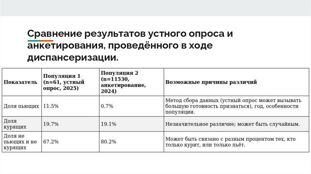 ЦельСопоставить данные о распространенности употребления алкоголя и курения, полученные