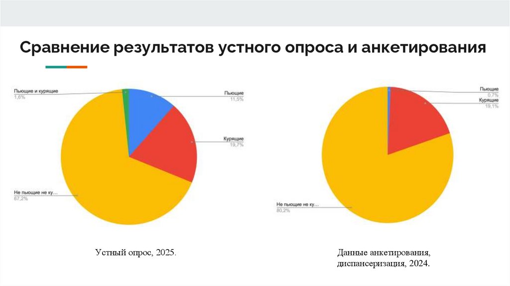 Сравнение результатов устного опроса и анкетированияУстный опрос, 2025.