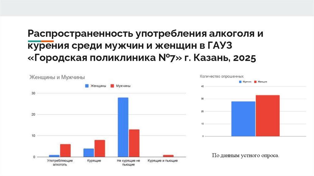 Распространенность употребления алкоголя икурения среди мужчин и женщин в ГАУЗ