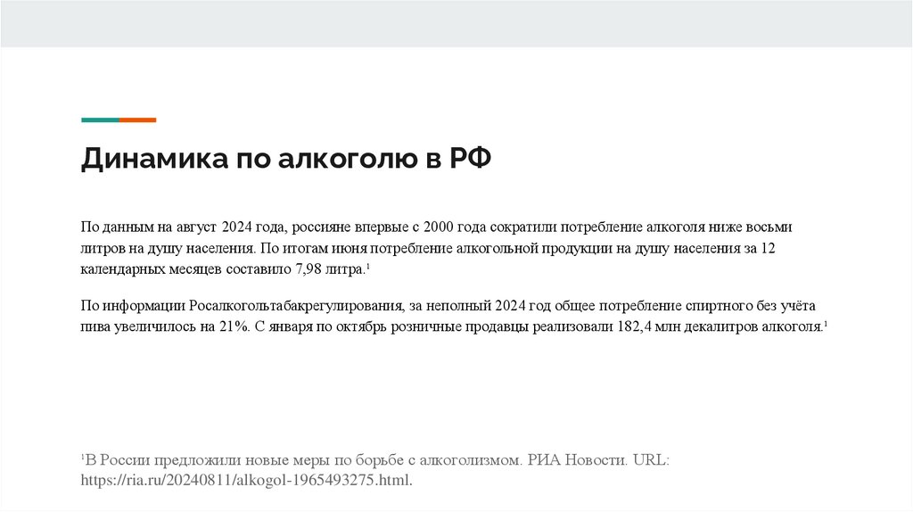 ¹В России предложили новые меры по борьбе с алкоголизмом. РИА Новости. URL: