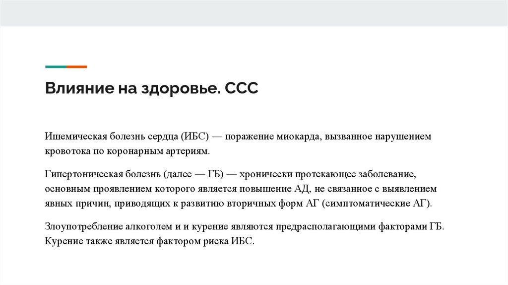 Влияние на здоровье. СССИшемическая болезнь сердца (ИБС) — поражение миокарда, вызванное нарушением
