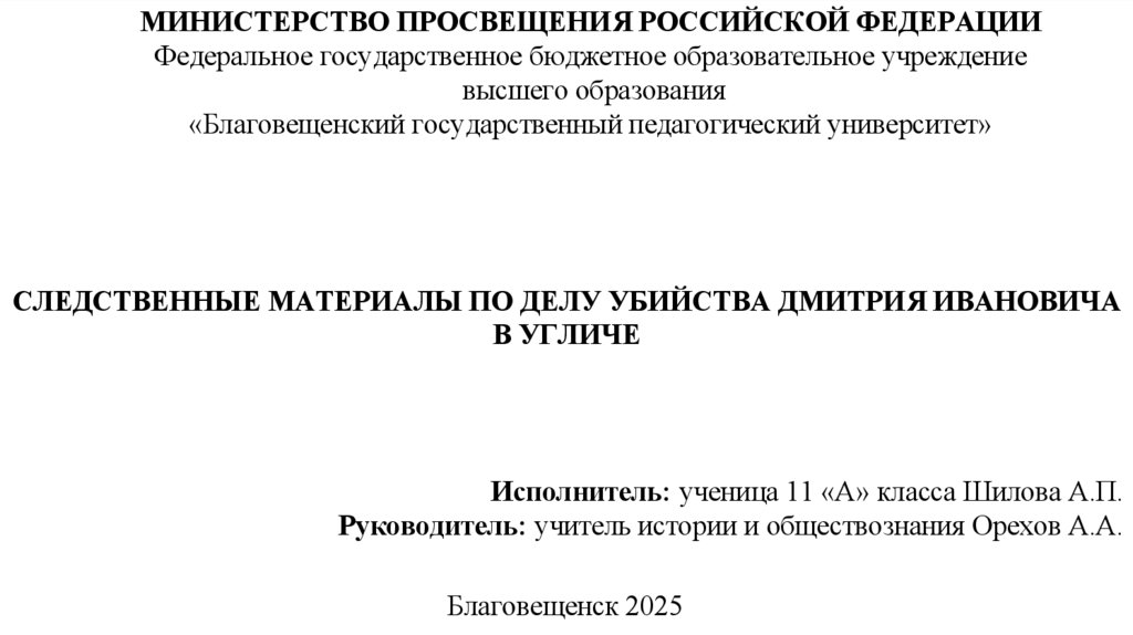 СЛЕДСТВЕННЫЕ МАТЕРИАЛЫ ПО ДЕЛУ УБИЙСТВА ДМИТРИЯ ИВАНОВИЧА