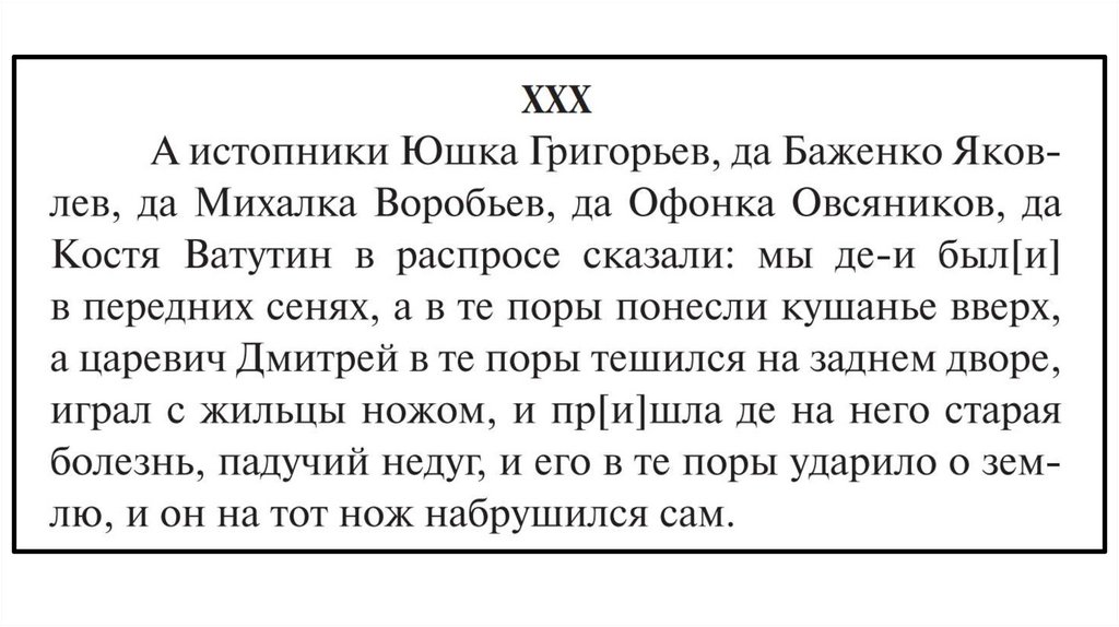 Следственные материалы по делу убийства Дмитрия Ивановича в Угличе