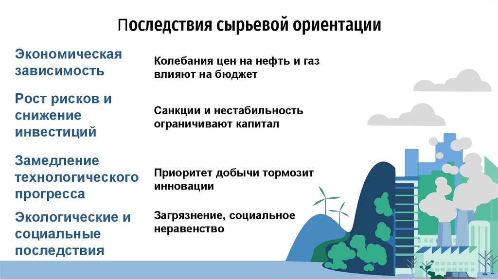 ориентироваться на добычу и экспорт сырья, несмотря на мировой тренд к