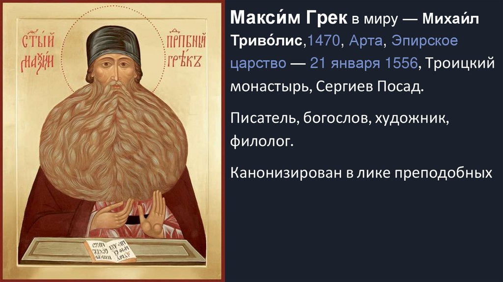 Макси́м Грек в миру — Михаи́лТриво́лис,1470, Арта, Эпирское