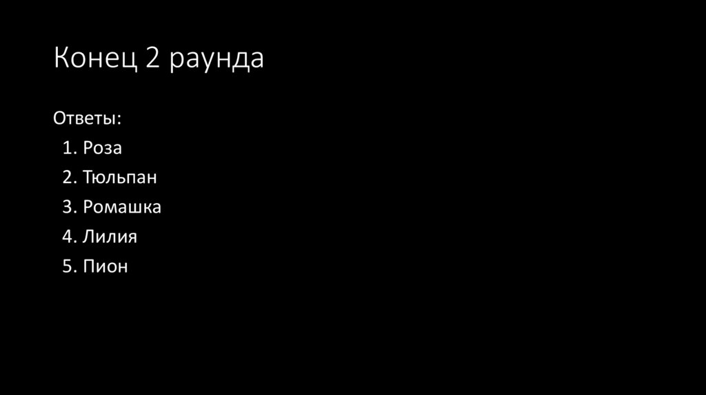 Конец 2 раундаОтветы: