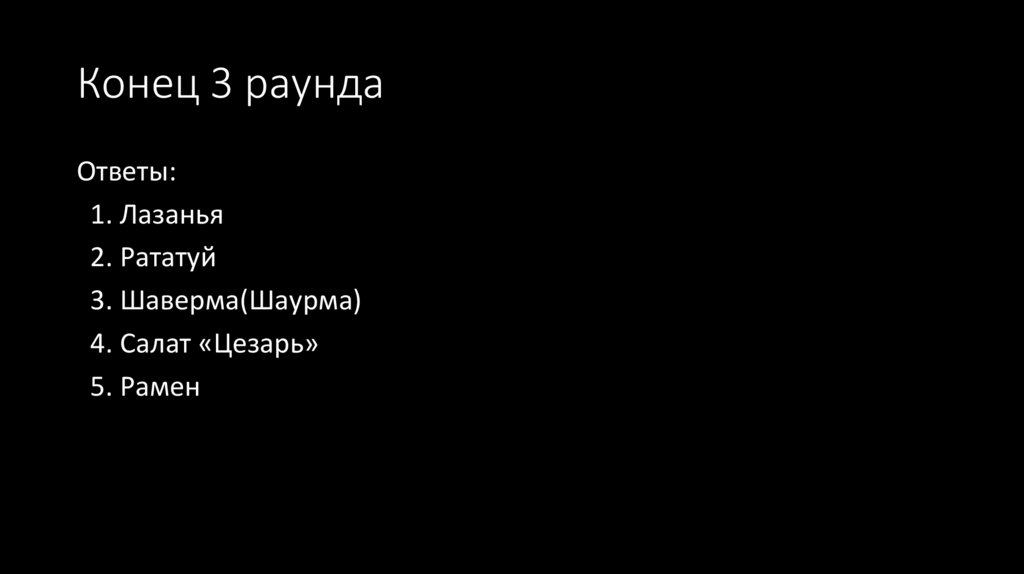 Конец 3 раундаОтветы: