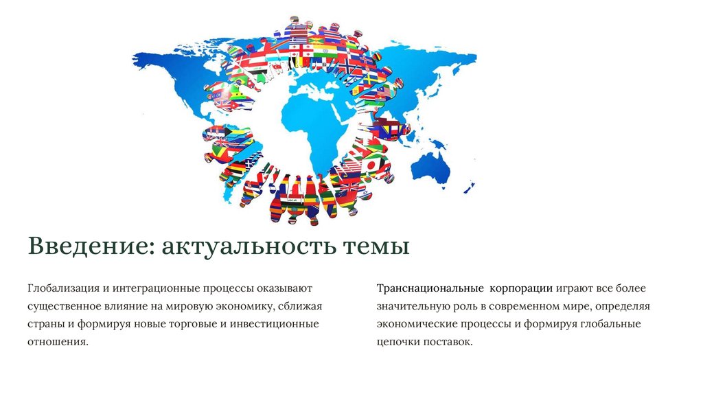 Введение: актуальность темыГлобализация и интеграционные процессы оказывают