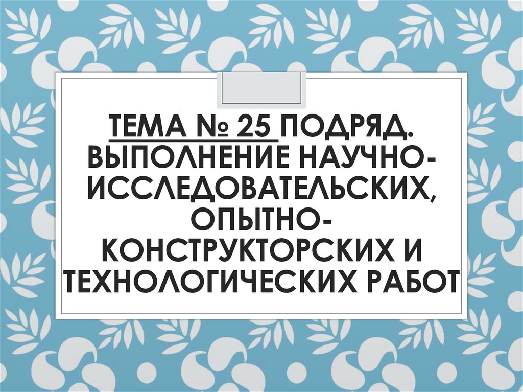 ТЕМА № 25 ПОДРЯД.ВЫПОЛНЕНИЕ НАУЧНОИССЛЕДОВАТЕЛЬСКИХ,