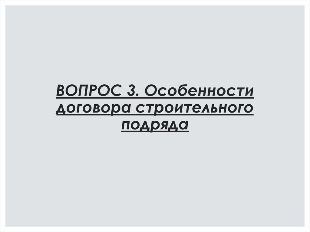 ◦ ВОПРОС 3. Особенности договора строительного подряда