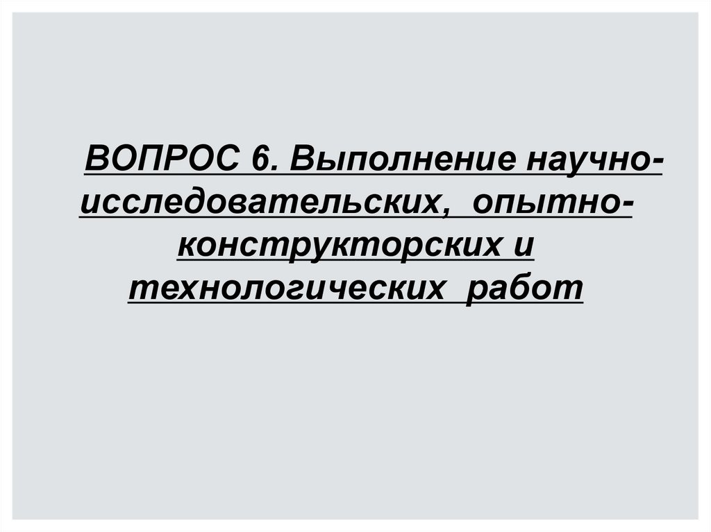 ◦ ВОПРОС 6. Выполнение научно-исследовательских, опытноконструкторских и технологических работ