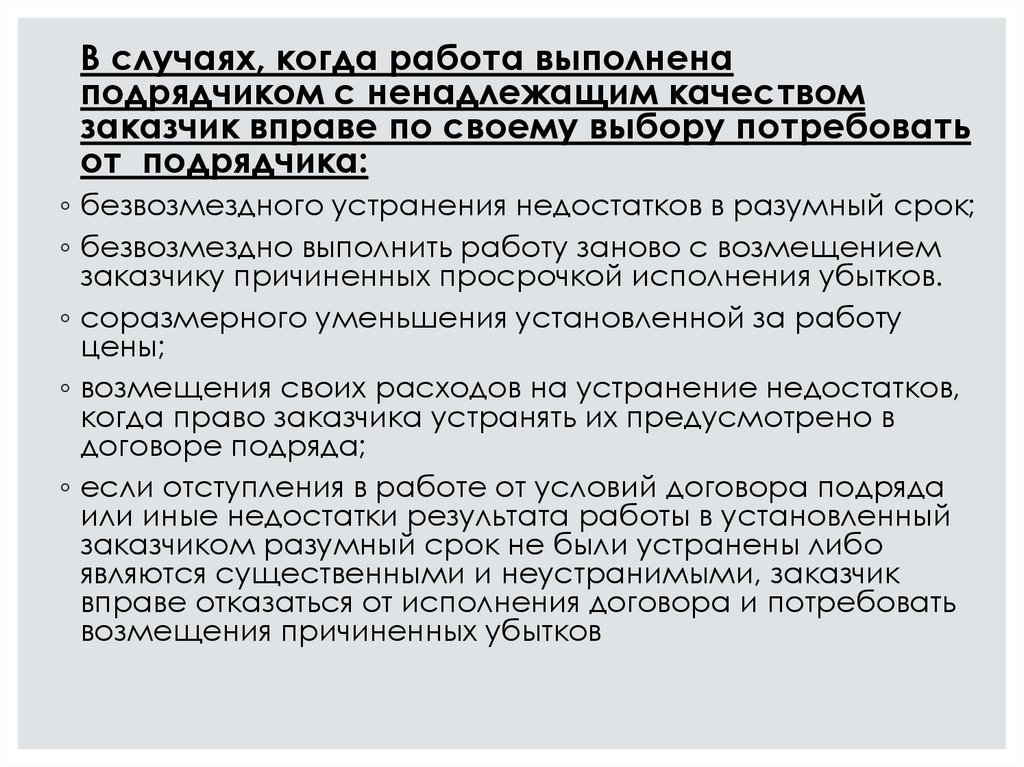 В случаях, когда работа выполненаподрядчиком с ненадлежащим качеством