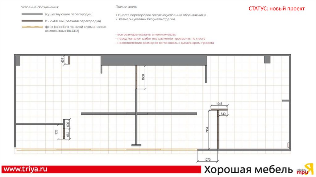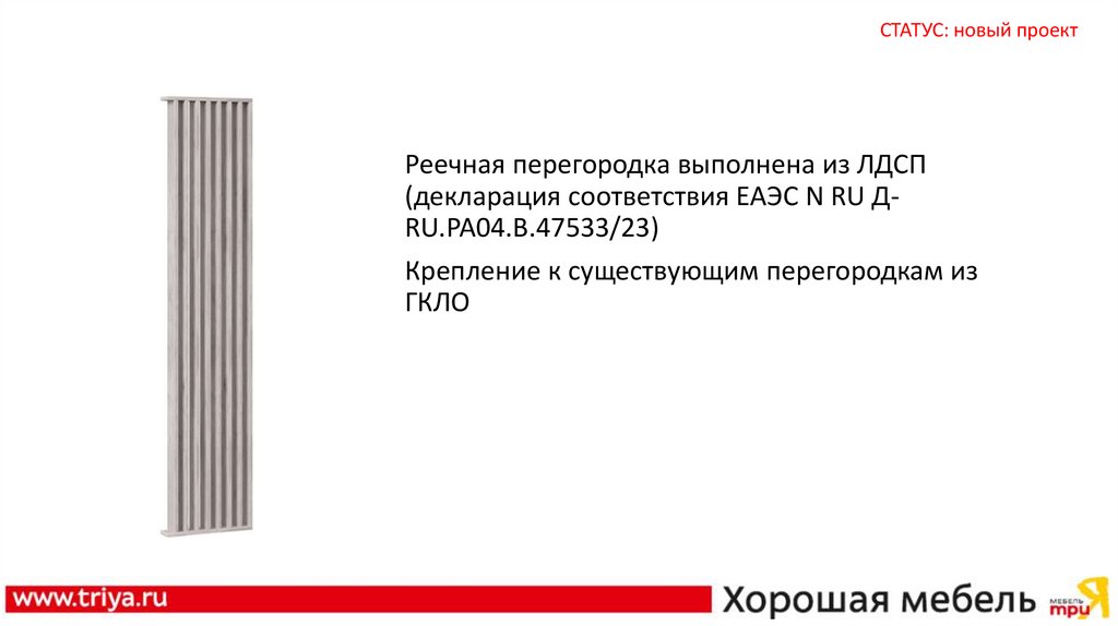 СТАТУС: новый проектРеечная перегородка выполнена из ЛДСП