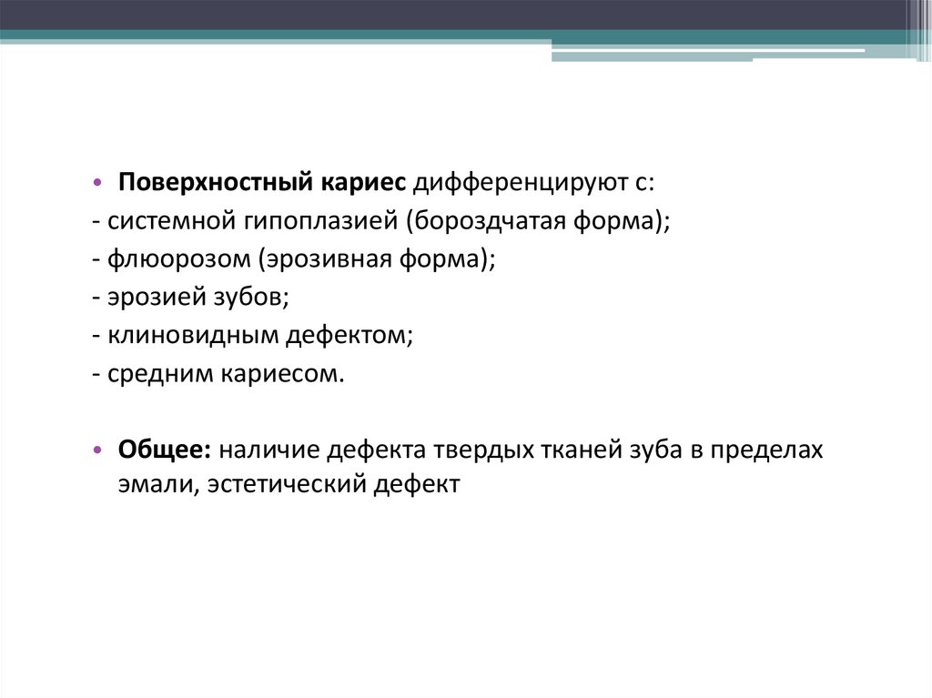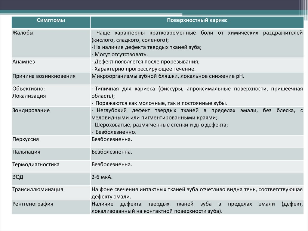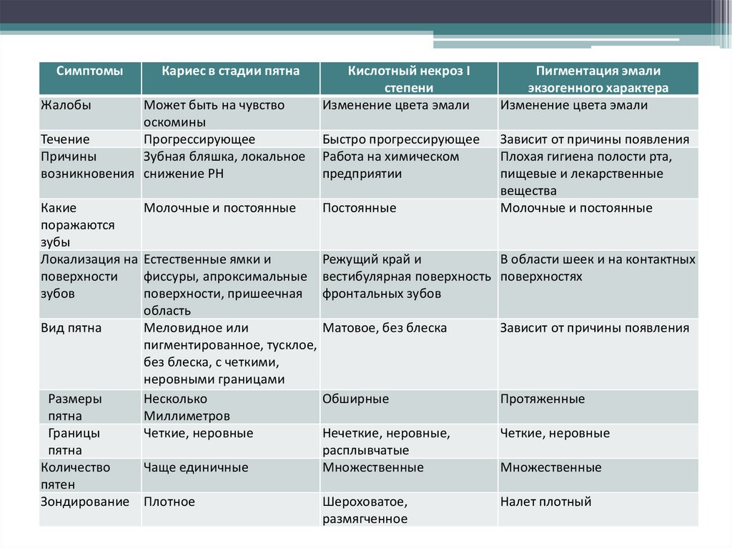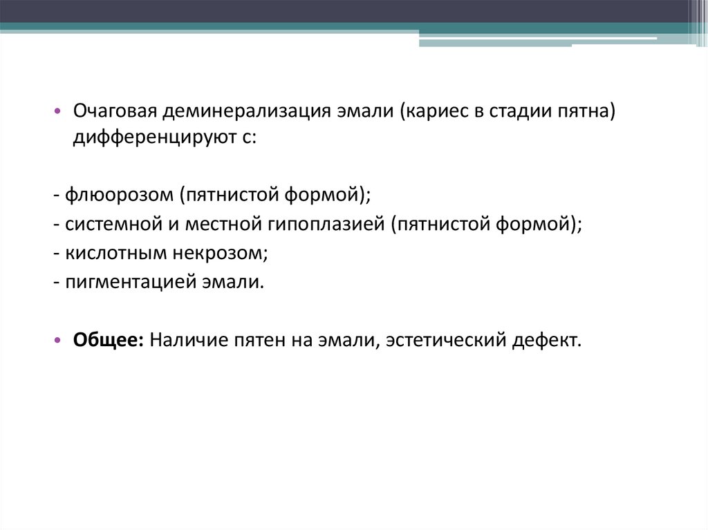Кариес эмали. Клиника, диагностика, дифференциальная диагностика