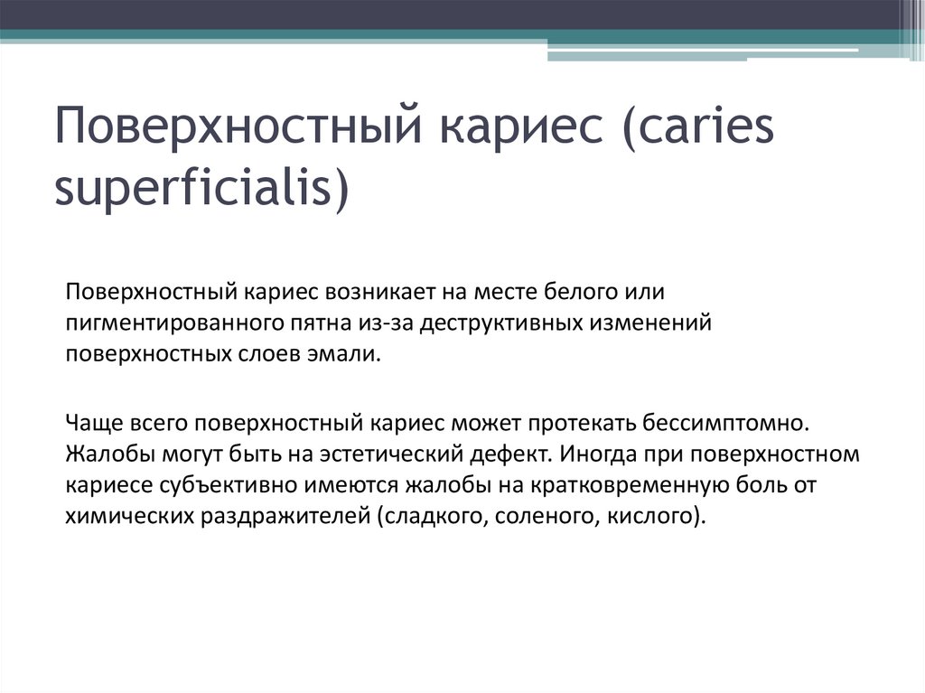дальнейшем превращается в поверхностный кариес за счёт нарушения