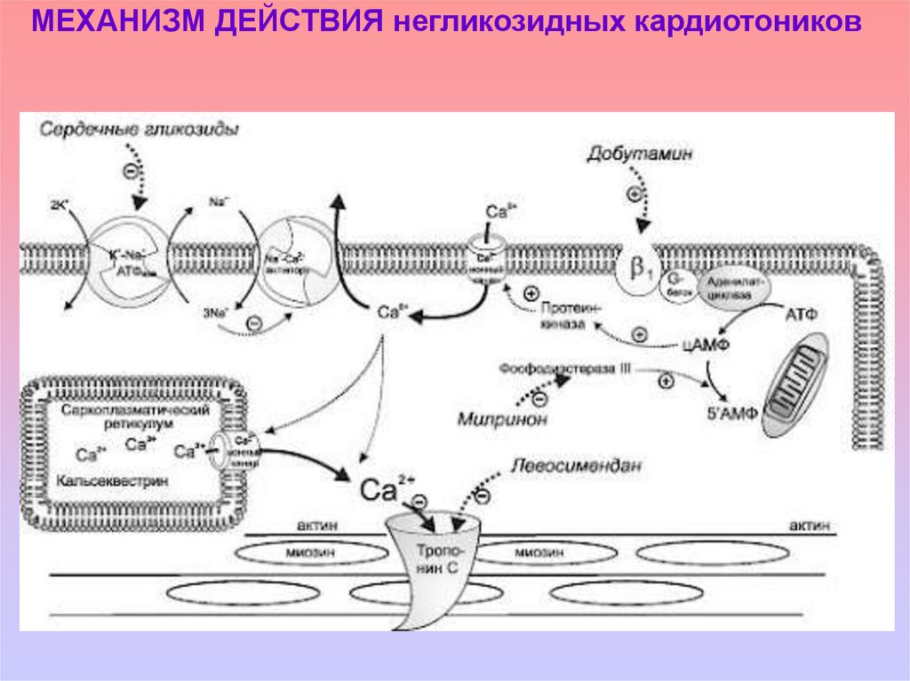 МЕХАНИЗМ ДЕЙСТВИЯ негликозидных кардиотоников19.