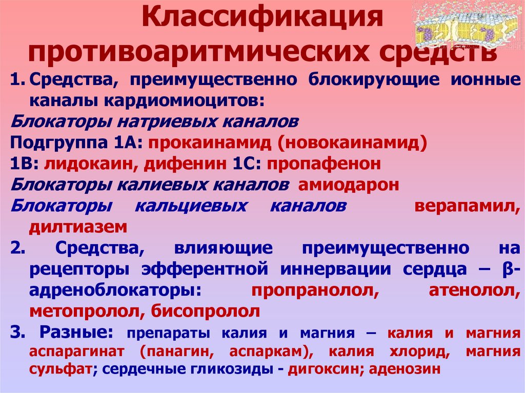 МЕХАНИЗМ ДЕЙСТВИЯ негликозидных кардиотоников20. Противоаритмические средства