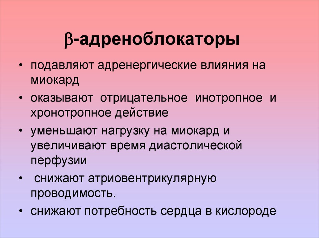 рецепторы эфферентной иннервации сердца – βадреноблокаторы:
