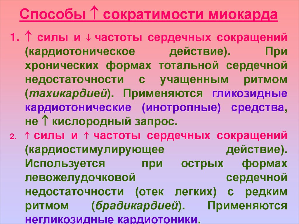 1.Инотропный (положительный)- увеличение силы сокращения в систолу