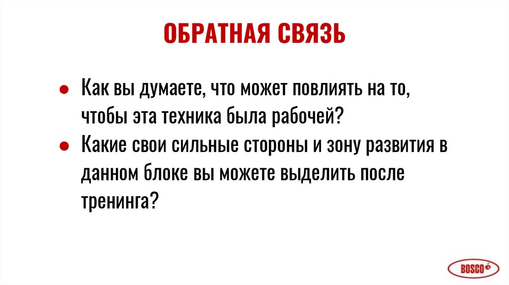 ОБРАТНАЯ СВЯЗЬ● Как вы думаете, что может повлиять на то,