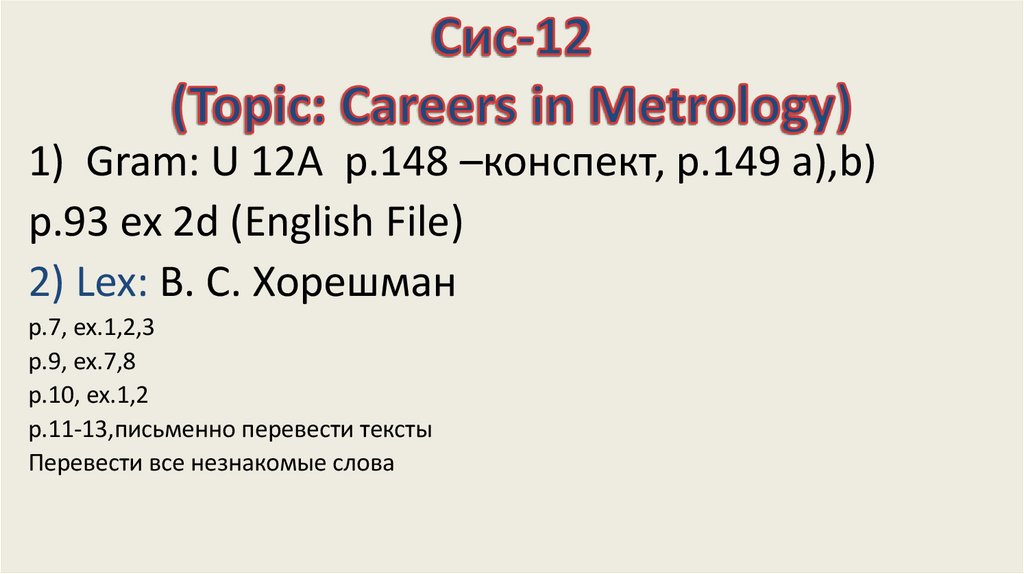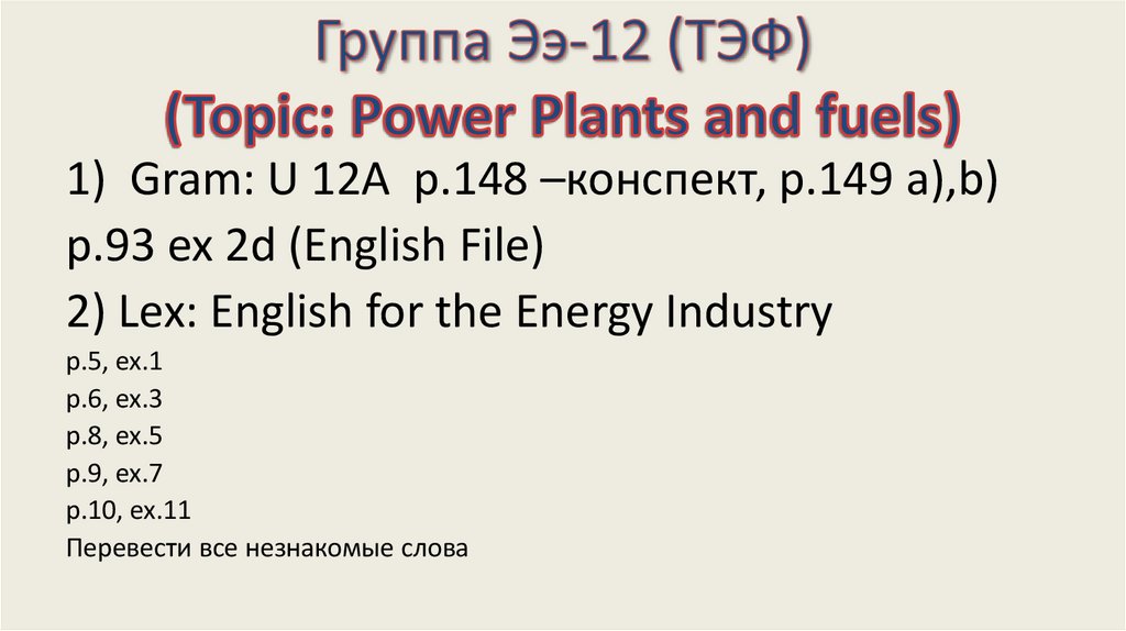 1) Gram: U 12A p.148 –конспект, p.149 a),b)p.93 ex 2d (English File)