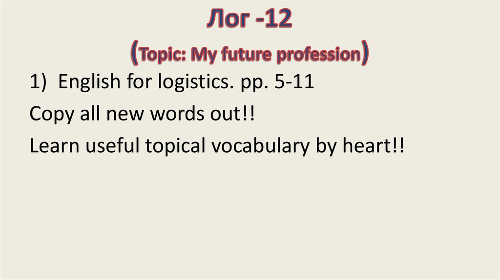 1) English for logistics. pp. 5-11Copy all new words out!!