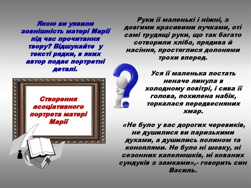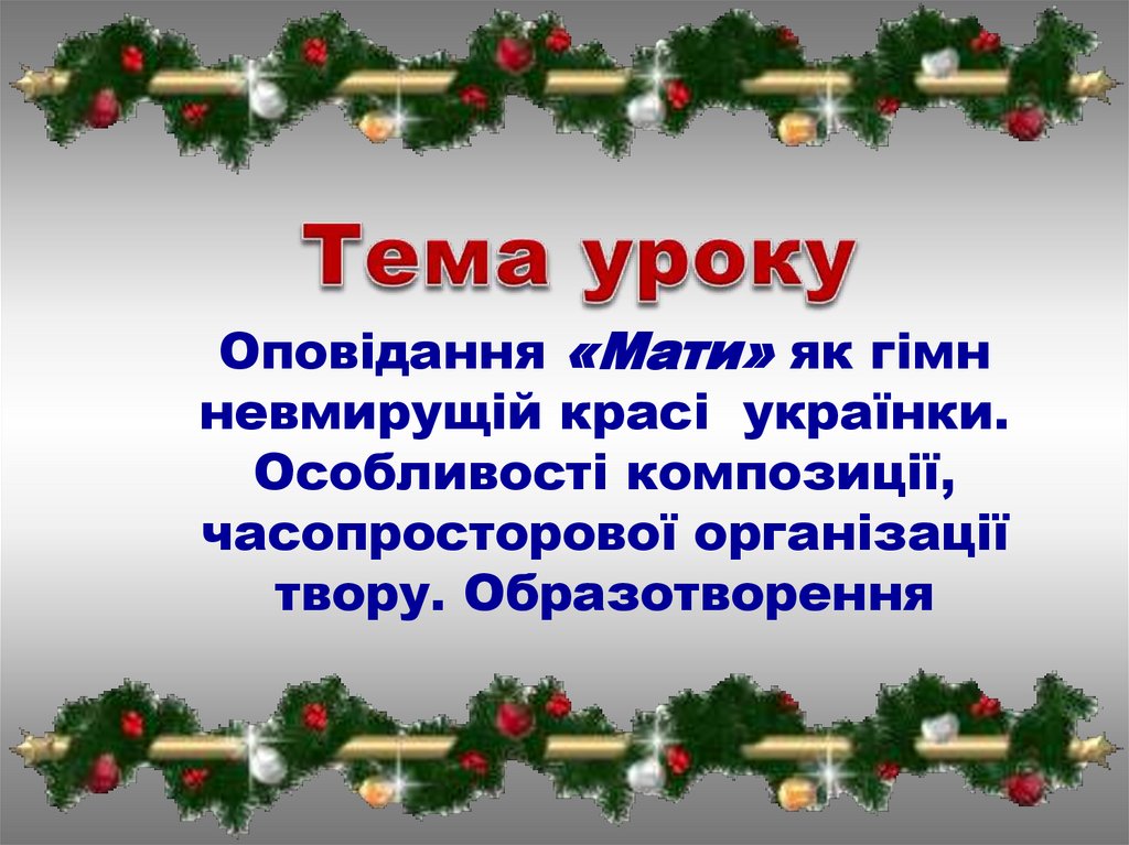 Оповідання «Мати» як гімн невмирущій красі українки. Особливості композиції, часопросторової організації твору. Образотворення