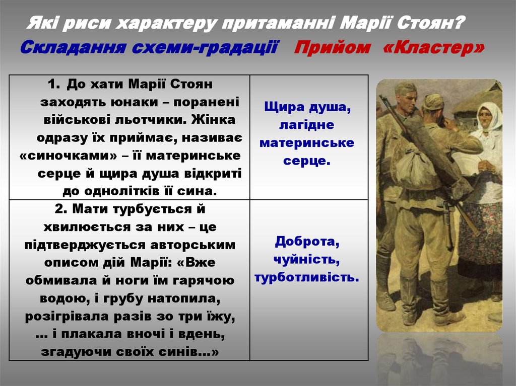 Які риси характеру притаманні Марії Стоян?Складання схеми-градації Прийом «Кластер»